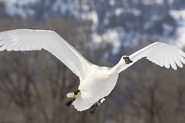 One of the biggest changes this November were the number of Trumpeter Swans on Flat Creek. They come to the valley to winter and the number of birds was amazing! There were well over 50 adult and young swans. You can see them on Highway 89/191 near the edge of town on Flat Creek in the National Elk Refuge. Swans need free flowing water to take off and land so temperatures will depict where they go. As long as it doesn’t get cold enough to freeze Flat Creek, you will find them feeding and resting along this stretch of water.