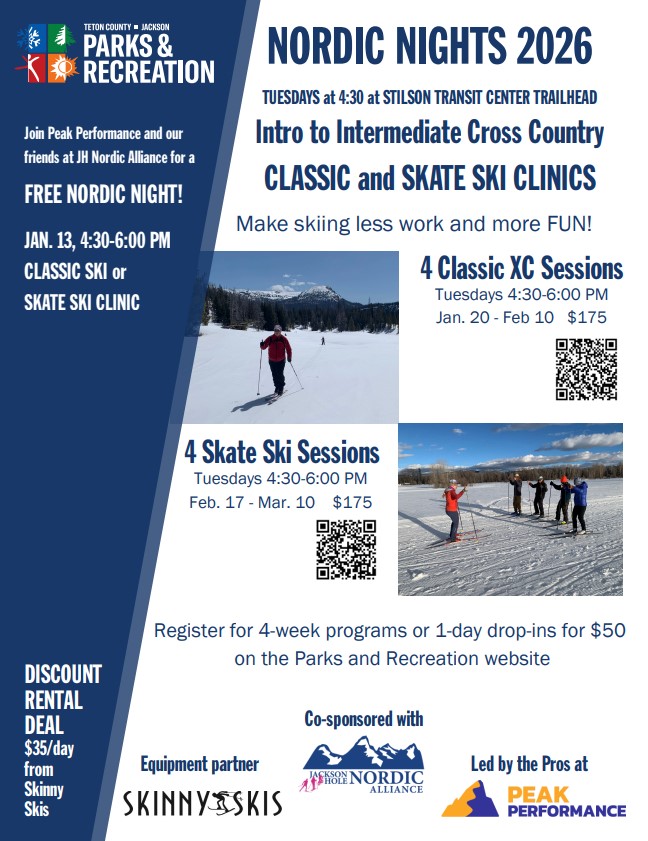 Locations vary around Teton Valley. Email Victoria and Sue at tetonvalleynordic@gmail.com for more information, or follow them on Instagram for location updates and show up!