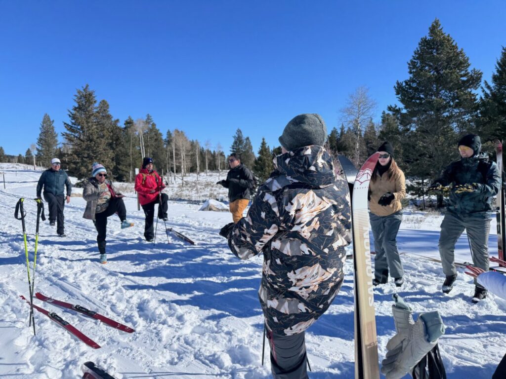 Editor’s note: To support getting groups like the one hosted by Camino Conmigo out on winter trails, the Nordic Alliance has a borrow closet of skis, boots, and poles that we are happy to loan. The borrow closet is funded through Salomon, one of our platinum sponsors. Please reach out to hello@jhnordic.com if you are part of an organization that would maybe like to take a group out on winter trails!