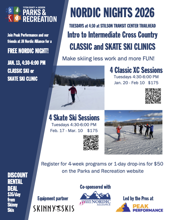 Register for 4-week programs or 1-day drop in on the Teton County Parks and Recreation website.