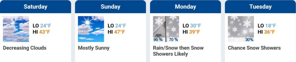 Enjoy the sunshine this weekend because Mountain Weather is forecasting a change in our weather pattern early next week. 😊