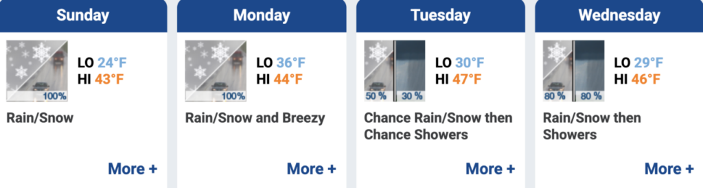 Mountain Weather forecasting snow, then maybe rain, which might be good motivation to get out right after breakfast.