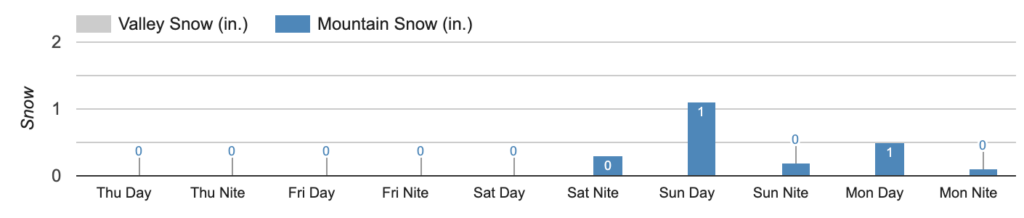 Another few days of sunshine and cold nights. While we keep hoping for a return of regular winter, your best bet is to get in every day of skiing that you can while tracks and touring are great! See the full forecast on Mountain Weather.