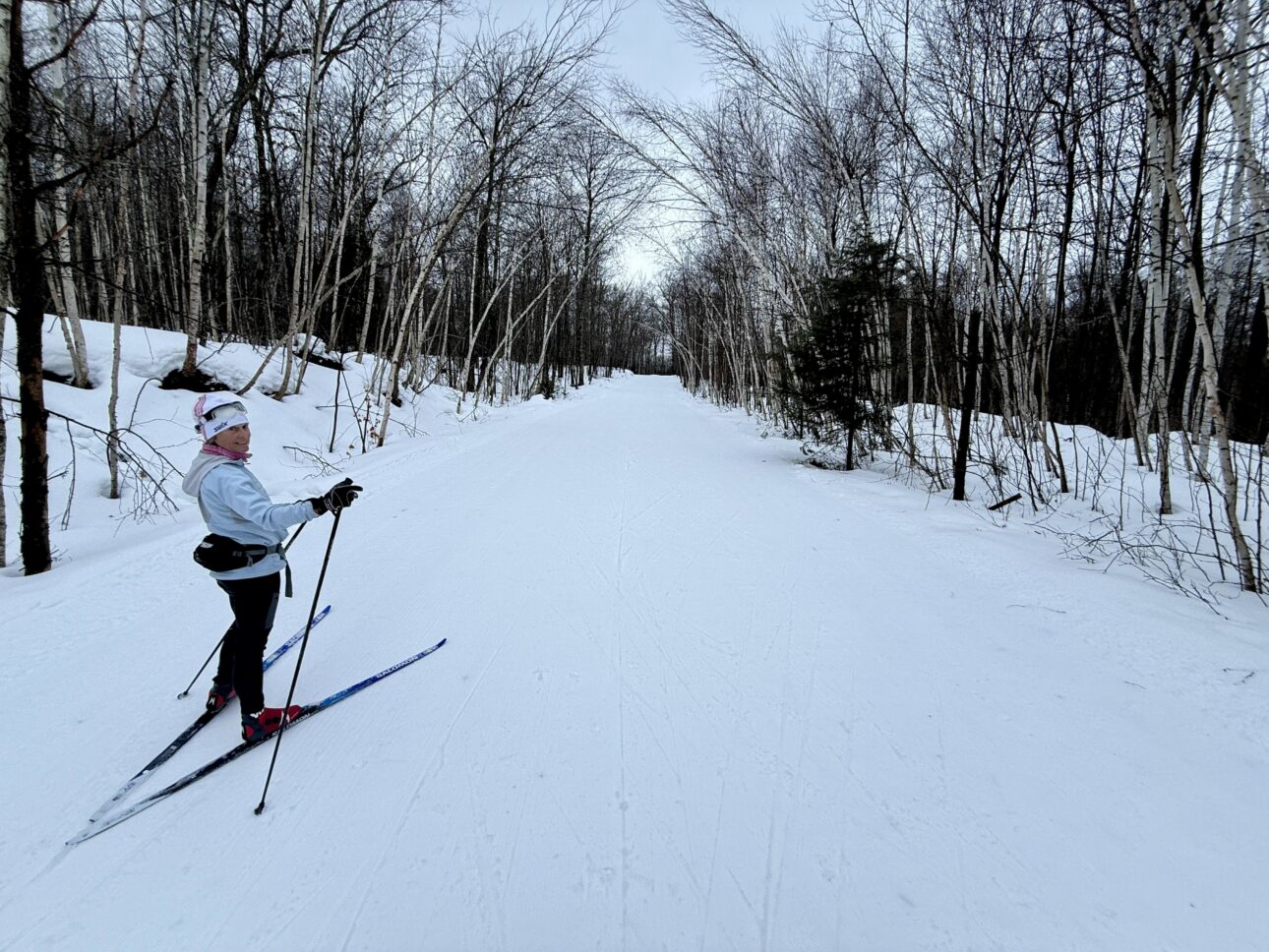However, energy was a little low for the effort needed on the climbs. I decided to play with technique (keeping chest and head up, sitting down to help my skis do the work of skating up hill) to achieve max glide for minimal effort.