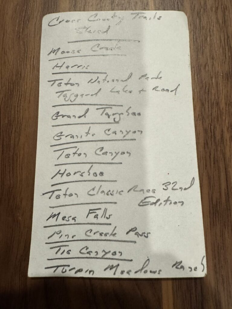 He sent this recap yesterday: “Nancy, thanks for taking our call and providing us invaluable information with the Jackson Hole Nordic Alliance beyond the computer. As I told you, I would provide you with an update prior to us leaving town. These are the cross country ski trails that my wife and I completed. With your recommendation we stopped by the Teton Pines Country Club Nordic office and purchased the following book which was invaluable to assist us on journey beyond computer electronica.