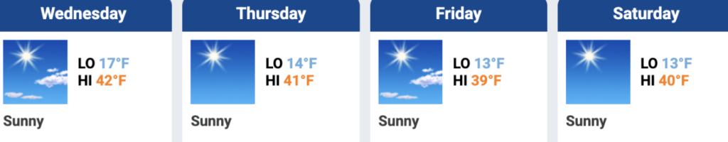 General Weather – cold nights, blue days