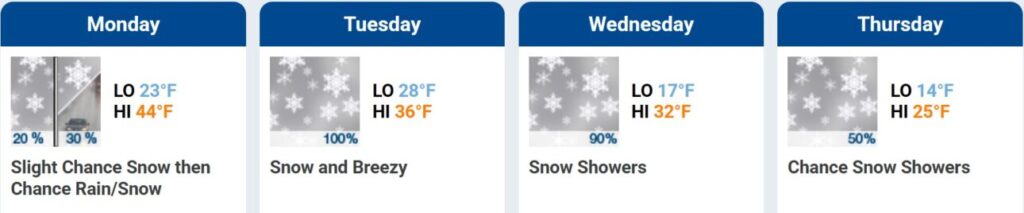 Daily Trail Report for 2.16.26. A week ago today Punxsutawney Phil emerged and saw his shadow indicating we would have 6 more weeks of winter. Thank Ullr, the Norse god of skiing. According to the weather reports winter will be ramping up with some low pressure moving into the area these next few weeks. So get outside and enjoy it while we can, time flies like Johannes Klæbo on skis. General Weather – wintery The forecast is… Read More