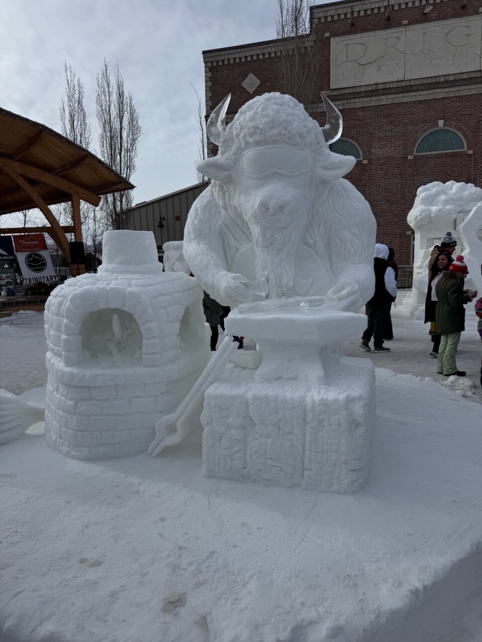 Editor’s Note: The Driggs Downtown Association bought a snow maker this year in order to keep the Snowscapes tradition going! The sculptures are usually the third week in January.