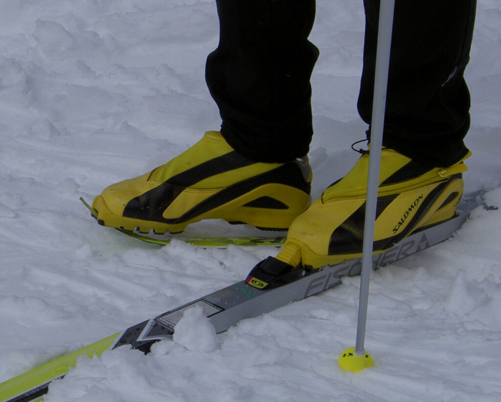 Also, you can use your ski tip to clean out ice or snow from under the bar in the front of the boot.